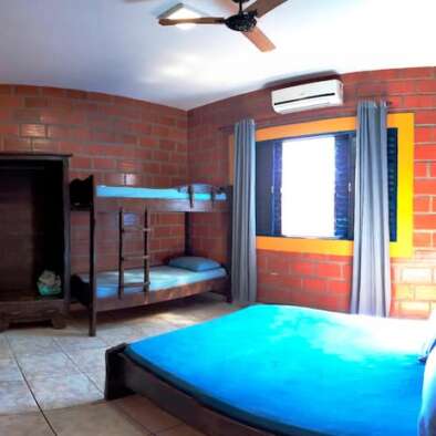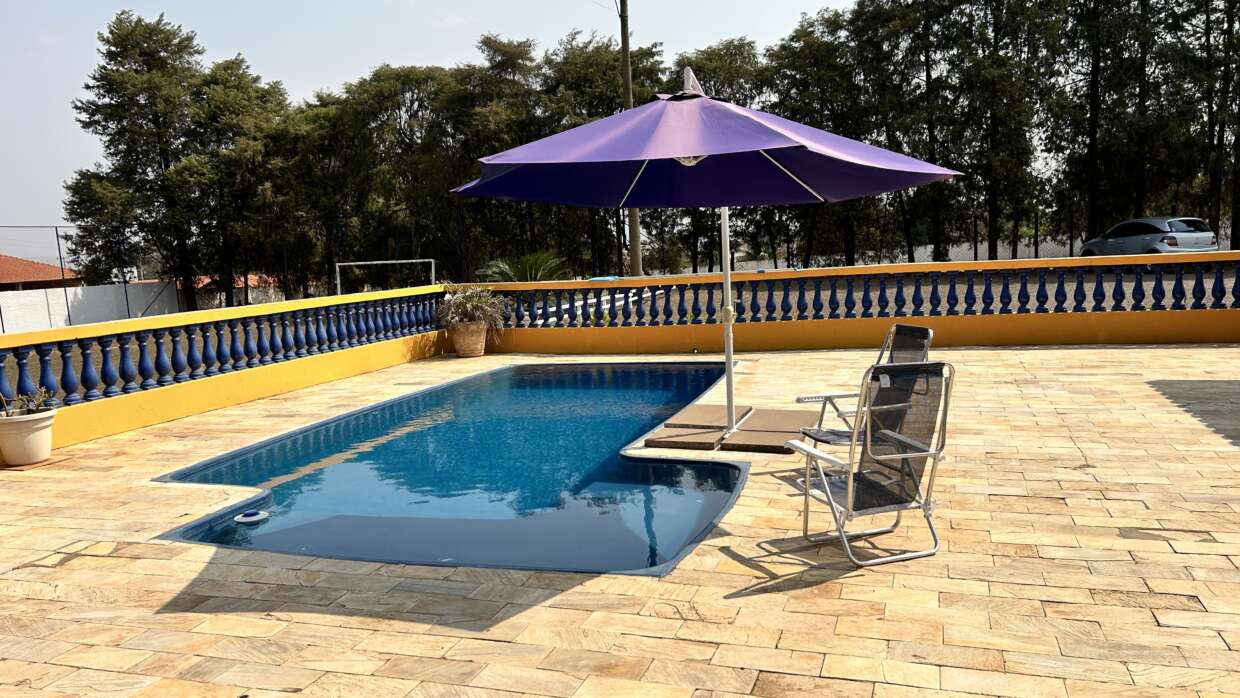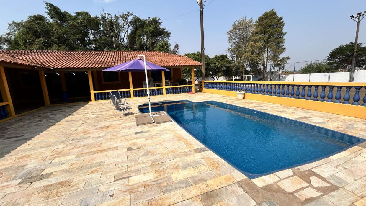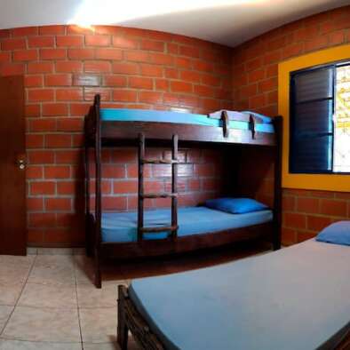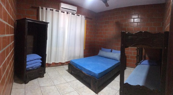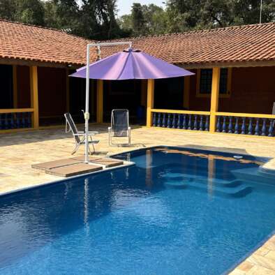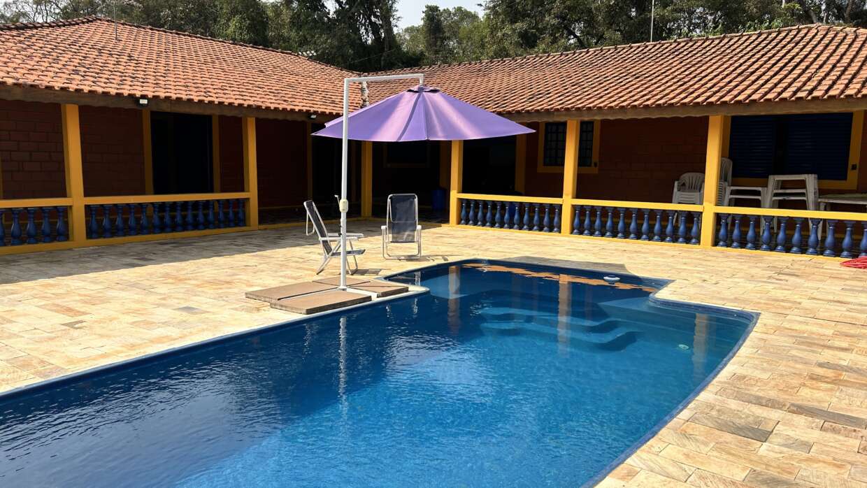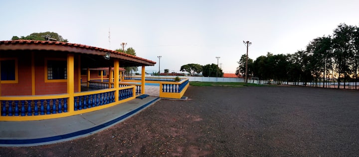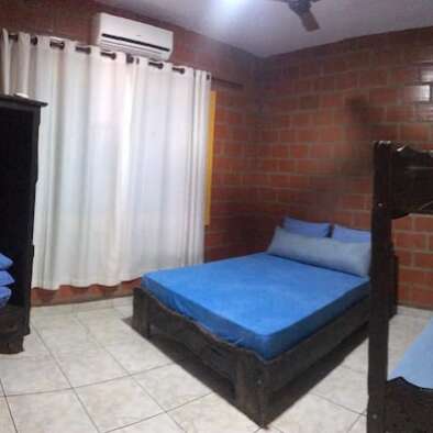 A chácara fica num bairro próximo ao centro, cerca de 2,5km. São ao todo 4 quartos, todos com ar condicionado.