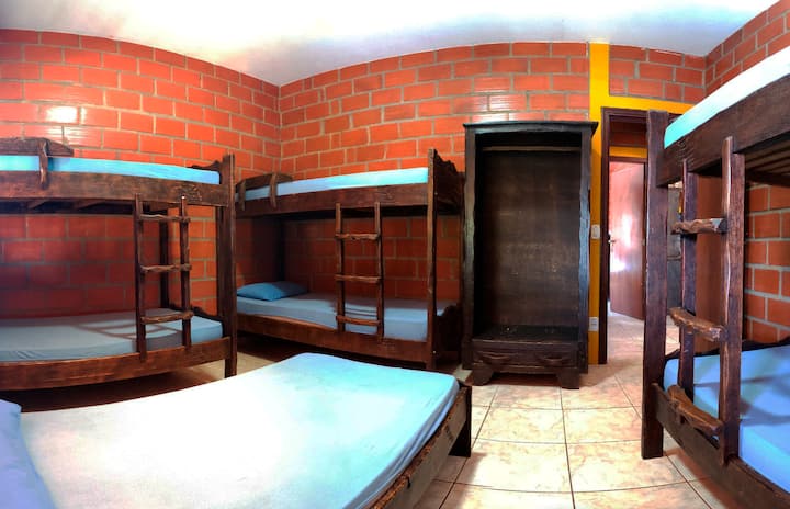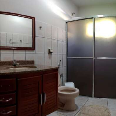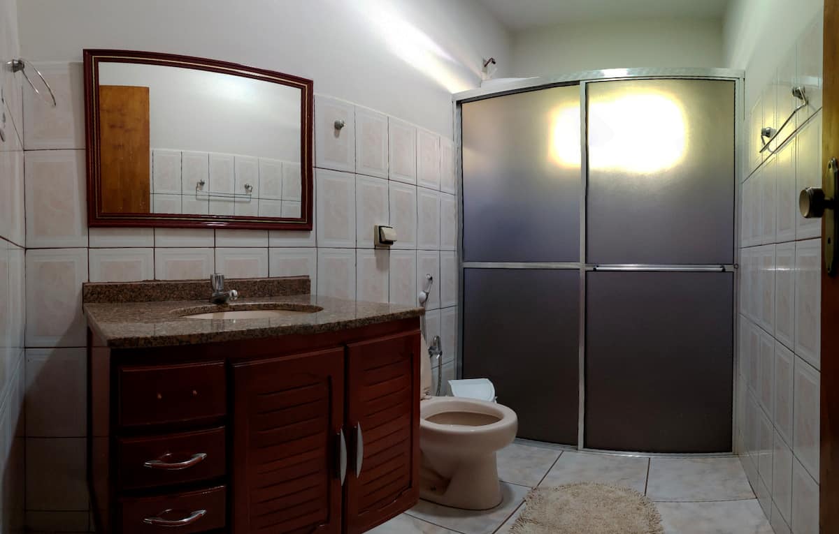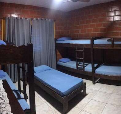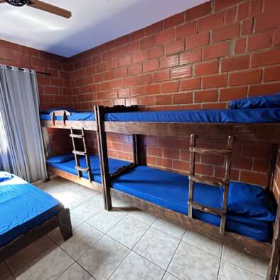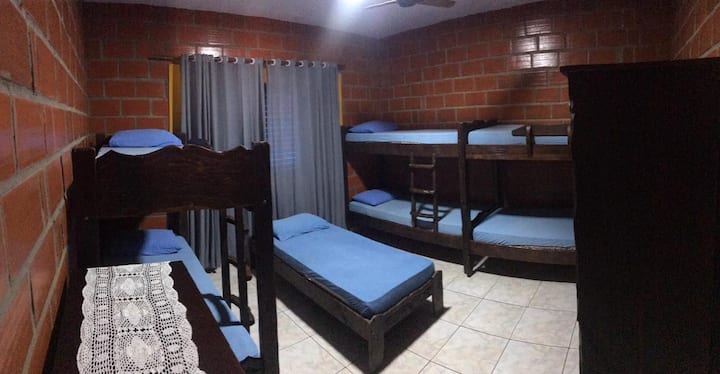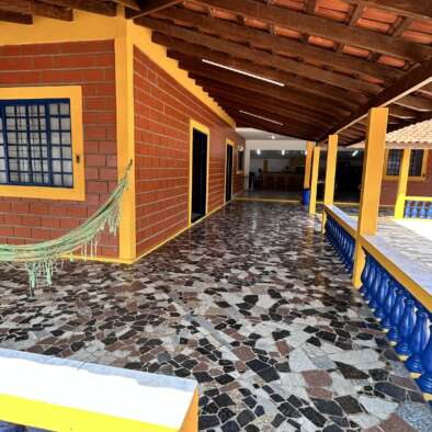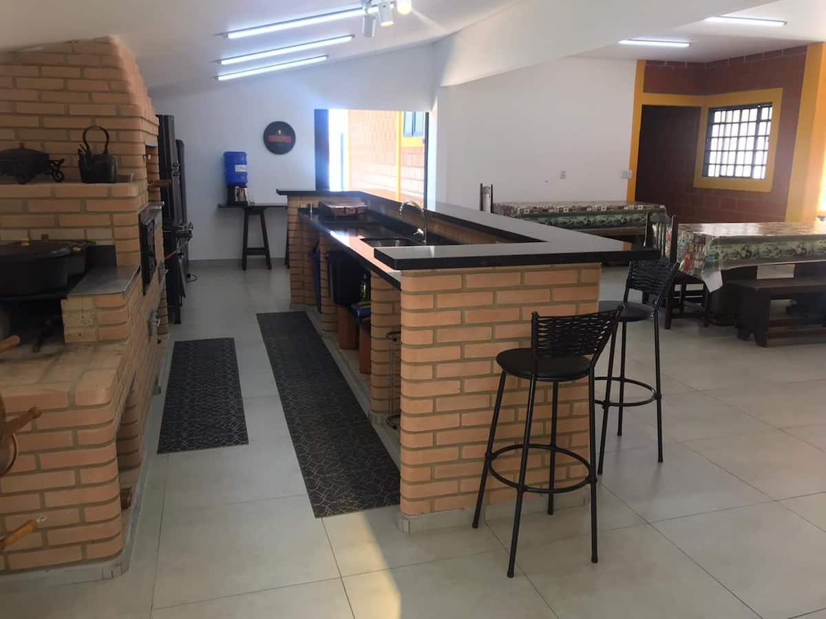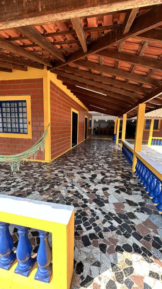 A chácara fica num bairro próximo ao centro, cerca de 2,5km. São ao todo 4 quartos, todos com ar condicionado.