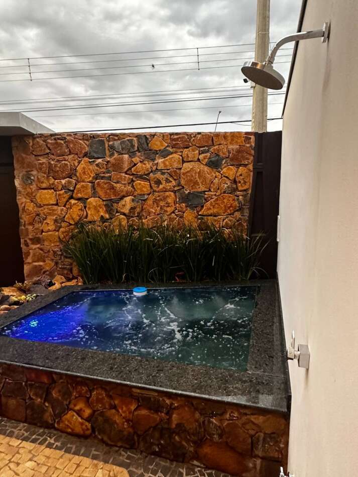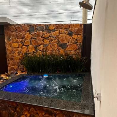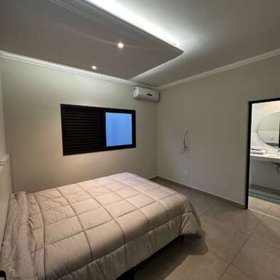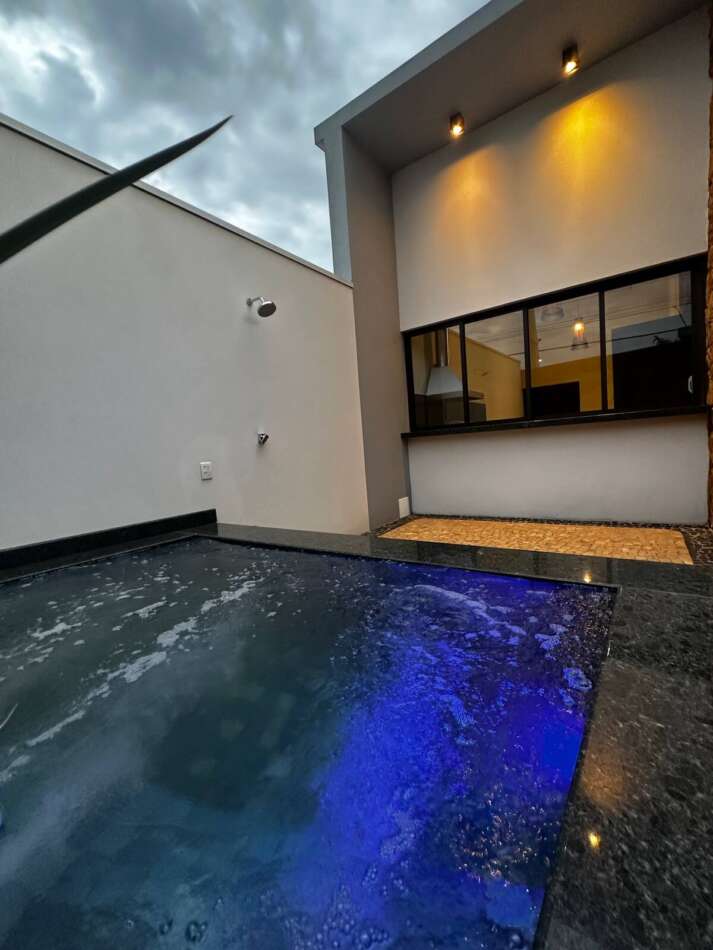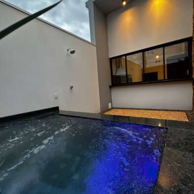 A casa acomoda até 6 pessoas, possui 3 Suítes com Ar Condicionado, Banheiros Exclusivos com Jardins de Inverno. Sala de Estar aconchegante com TV Smart, Cozinha Equipada, Integrada à Área Gourmet, Churrasqueira a Gás, jacuzzi Climatizada com Iluminação e Hidromassagem. Garagem para Dois Carros.